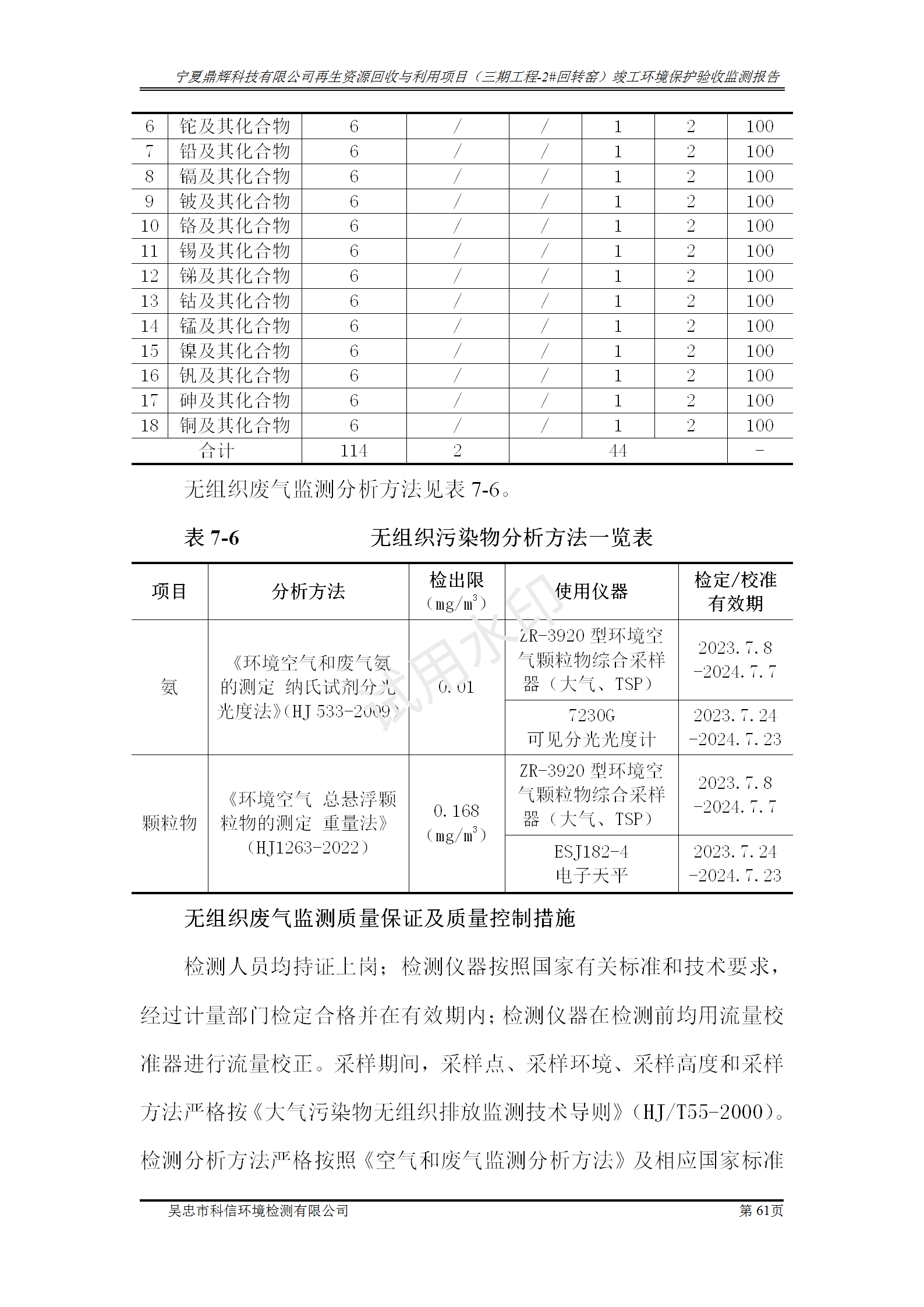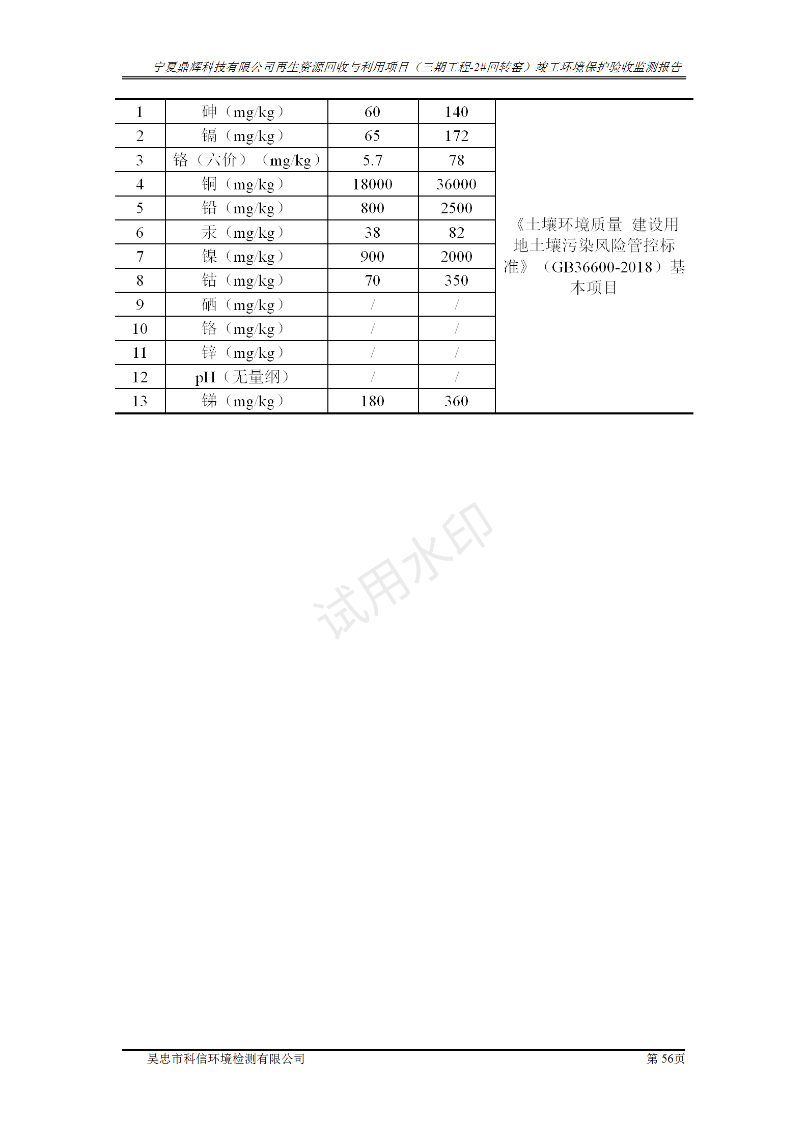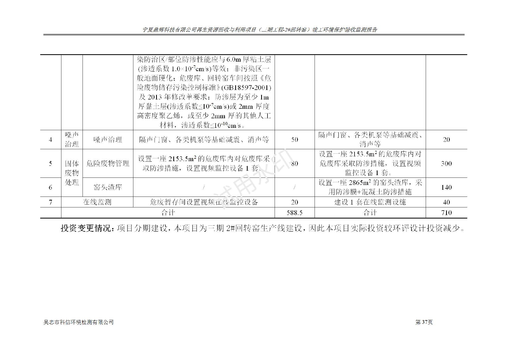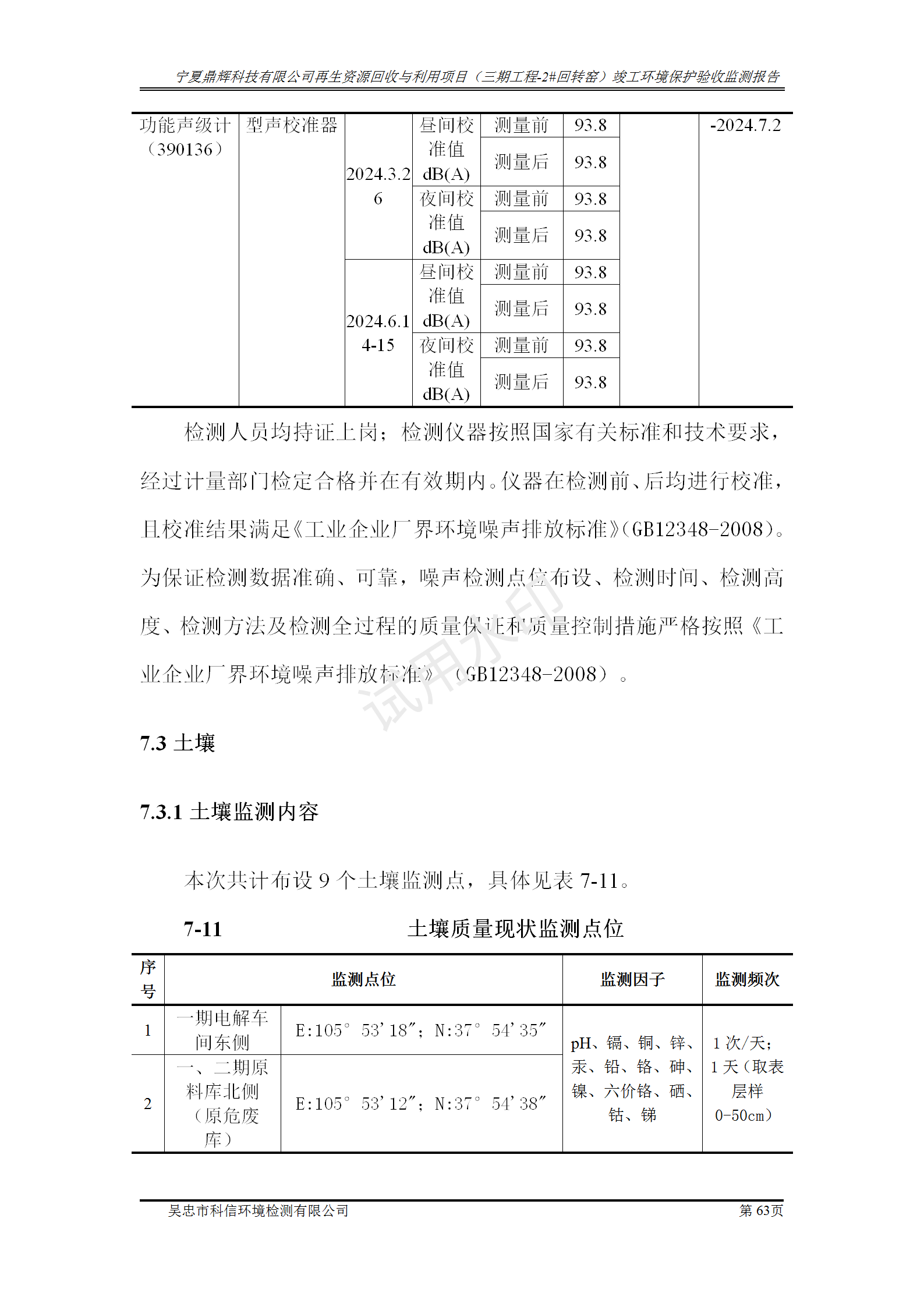 2024年7月5日,寧夏鼎輝科技有限公司(原名青銅峽市鼎輝工貿有限公司)按照環(huán)境保護部《建設項目竣工環(huán)境保護驗收暫行辦法(試行)》(國環(huán)規環(huán)評〔2017〕4號)組織對青銅峽市鼎輝工貿有限公司再生資源回收與利用項目(三期工程-2#回轉窯)進(jìn)行竣工環(huán)境保護驗收。驗收組由項目建設單位(寧夏鼎輝科技有限公司)、驗收監測單位(吳忠市科信環(huán)境檢測有限公司)及特邀3名專(zhuān)家組成。驗收組聽(tīng)取了青銅峽市鼎輝工貿有限公司再生資源回收與利用項目(三期工程-2#回轉窯)建設及環(huán)保設施建設運行情況的匯報,聽(tīng)取了驗收監測單位驗收監測情況的匯報,現場(chǎng)檢查了環(huán)保設施建設運行情況,審查核實(shí)了相關(guān)資料,經(jīng)討論、評議,形成如下驗收意見(jiàn):