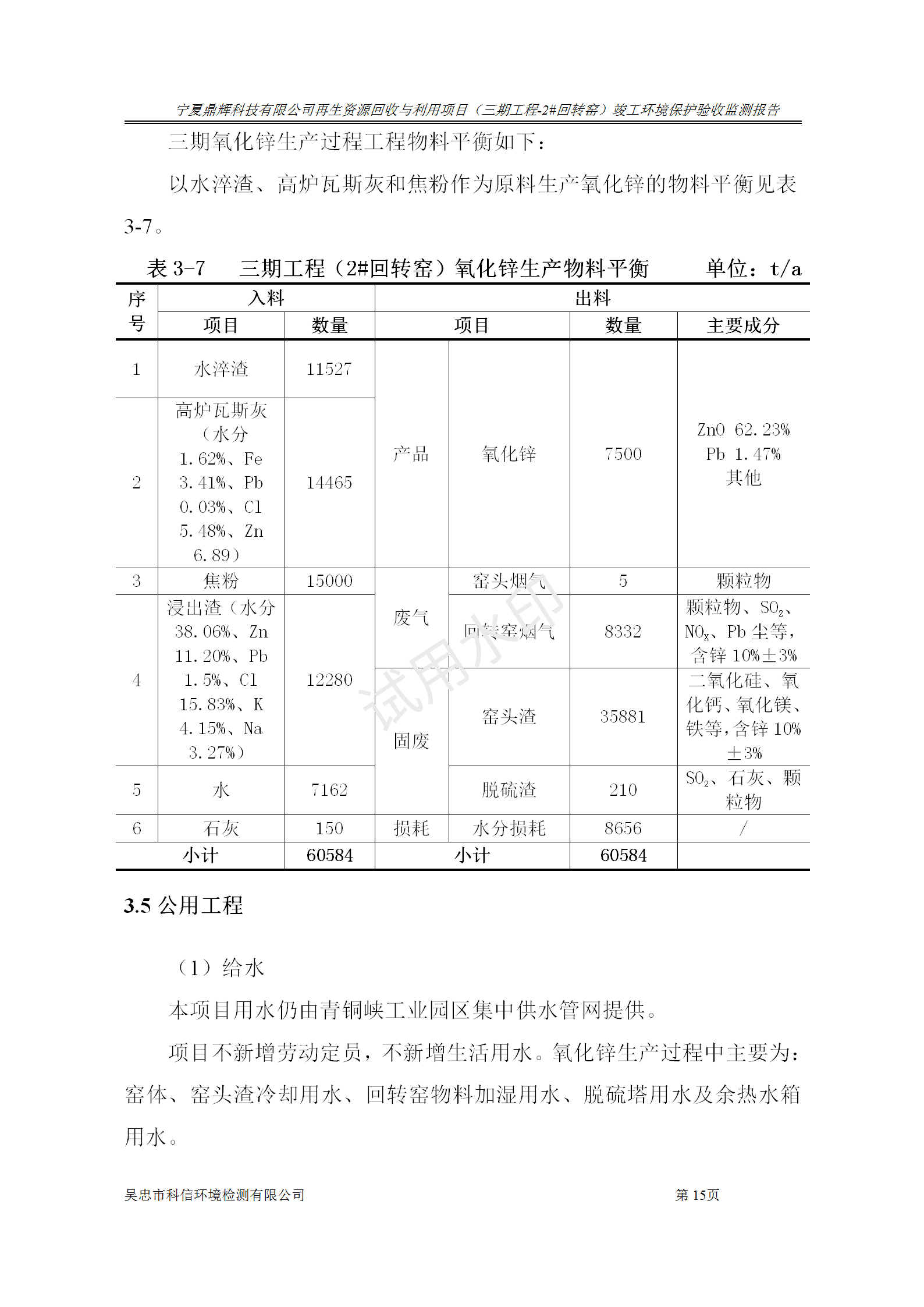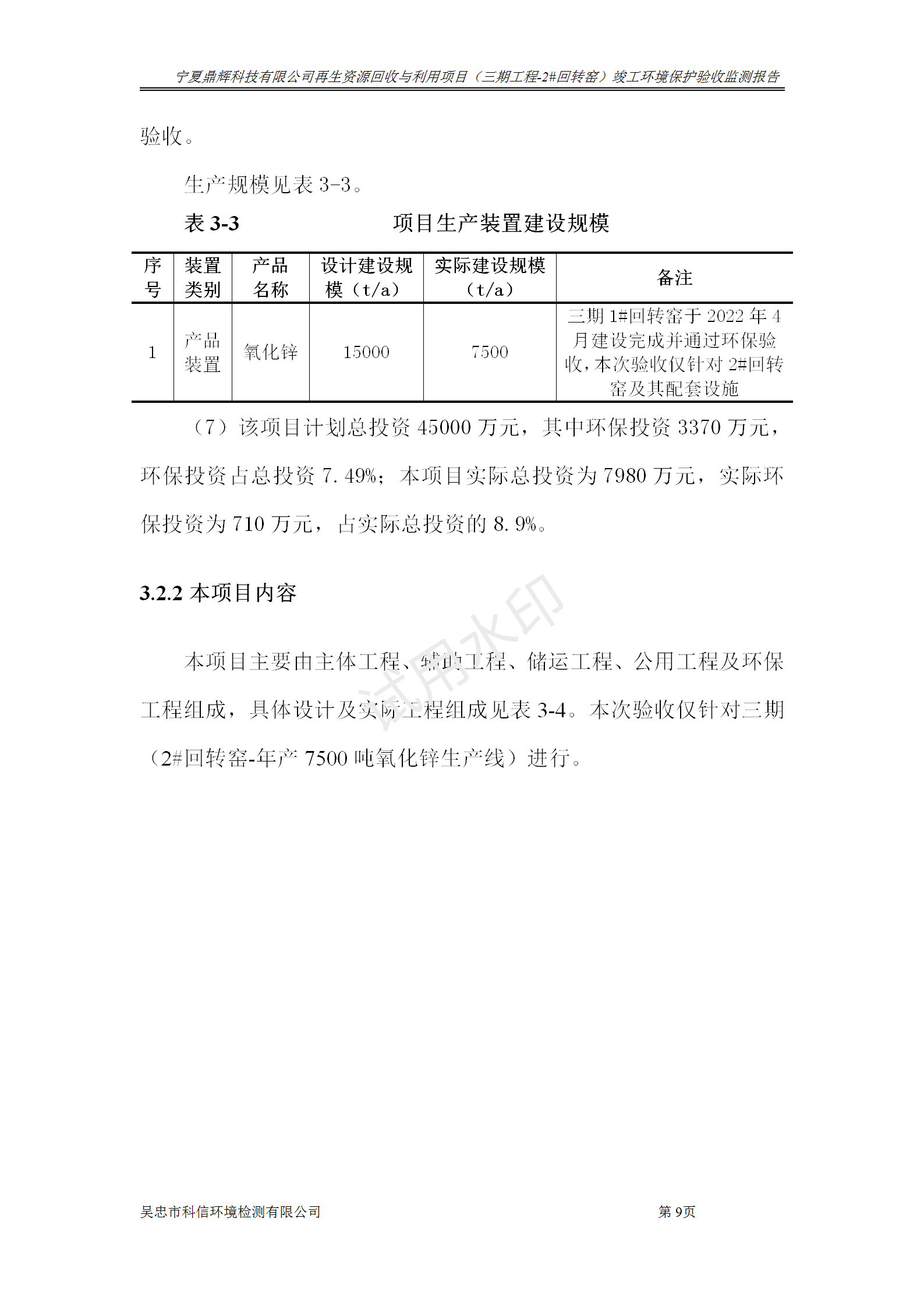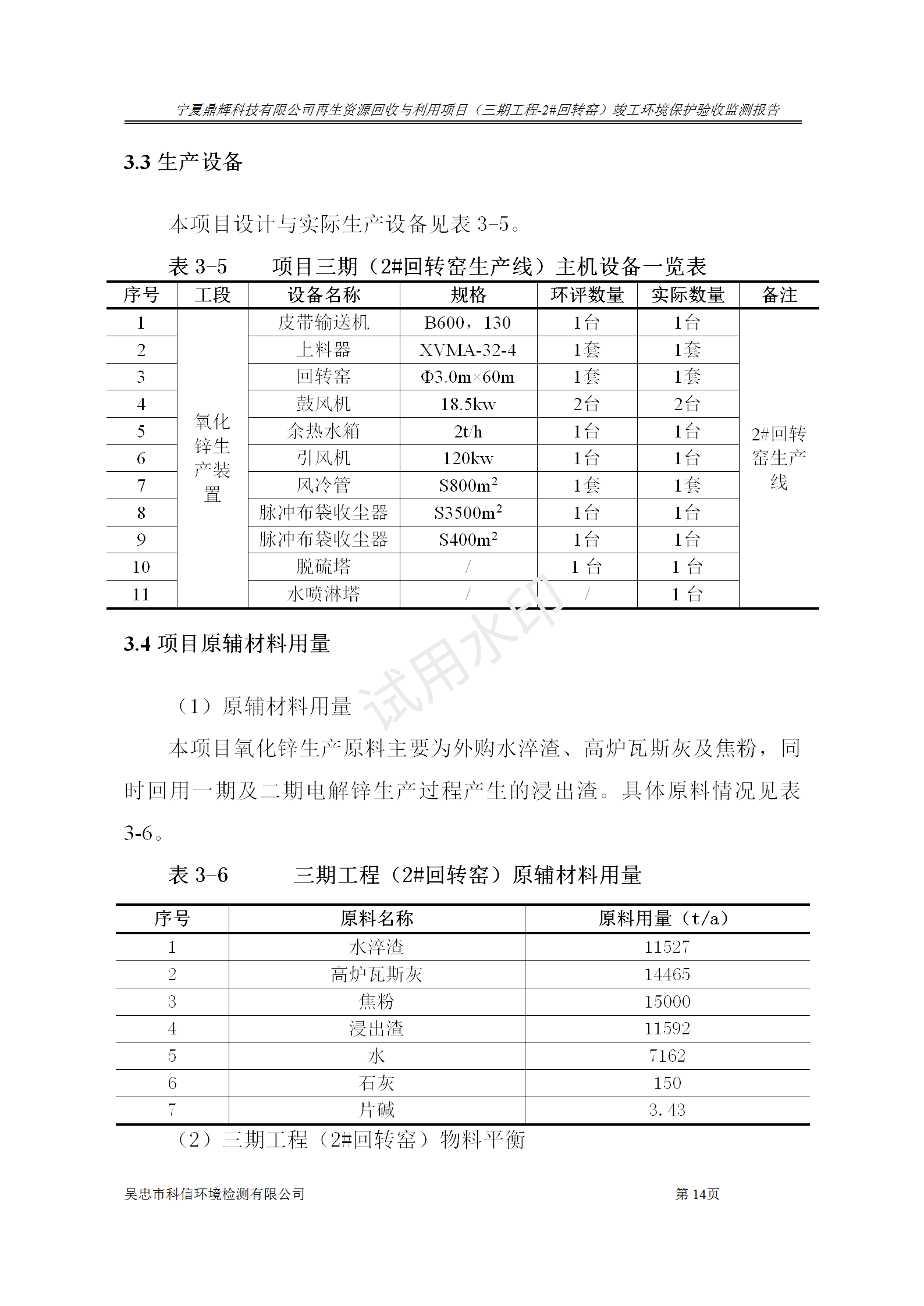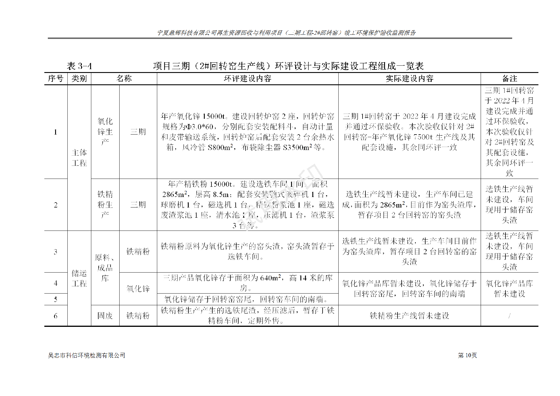 本次驗收范圍為:主要僅針對三期工程-2#回轉窯,建成的年產(chǎn)7500噸氧化鋅及其配套設施進(jìn)行。