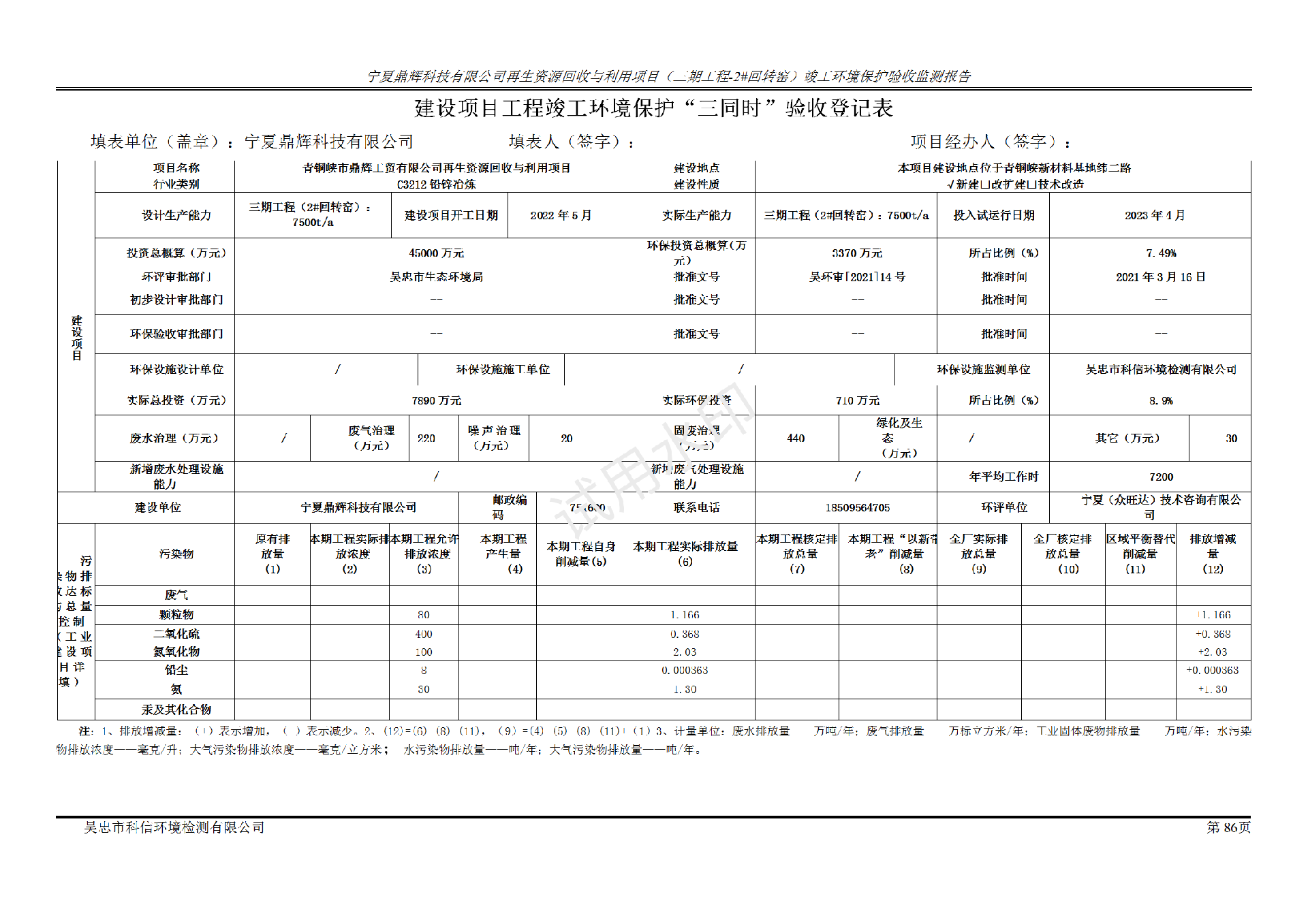 寧夏鼎輝科技有限公司再生資源回收與利用項目(三期工程-2#回轉窯)竣工環(huán)境保護驗收報告及專(zhuān)家意見(jiàn)公示