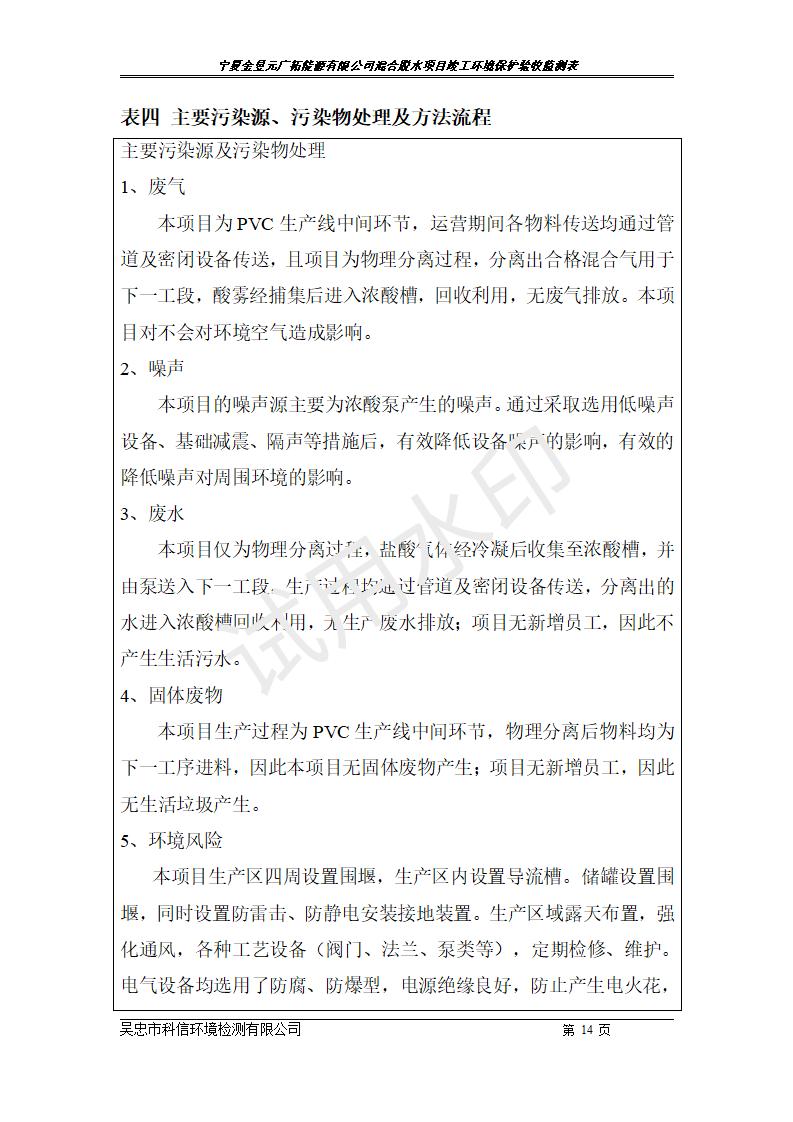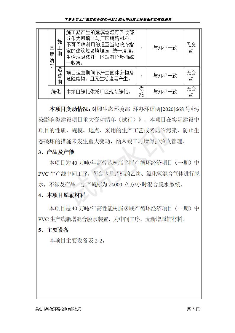 寧夏金昱元高新材料有限公司混合脫水項目竣工環(huán)境保護驗收意見(jiàn)+全文公示
