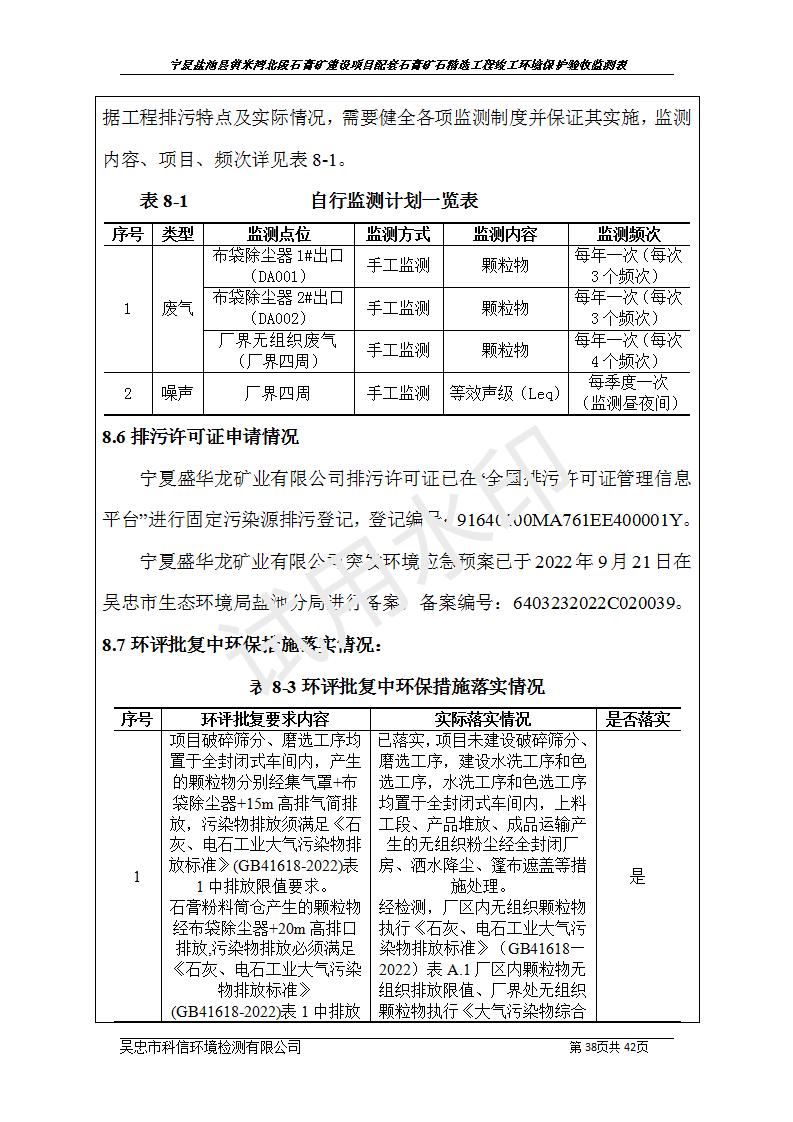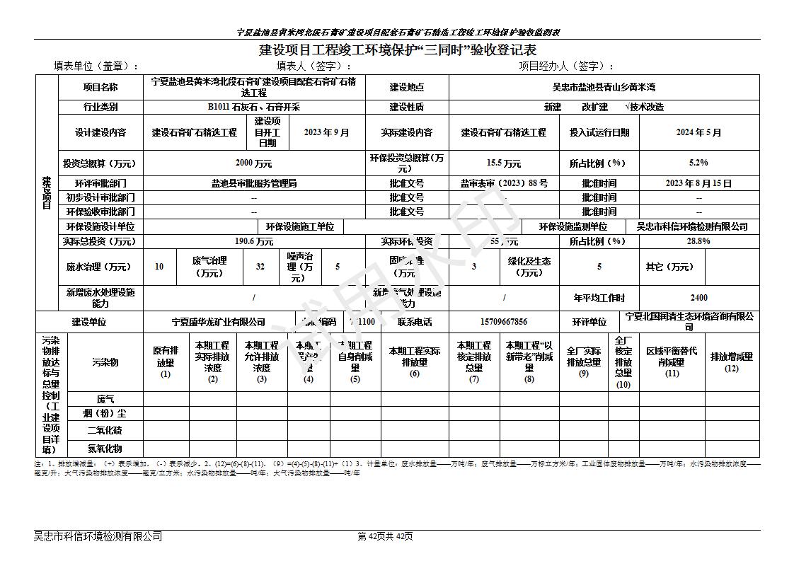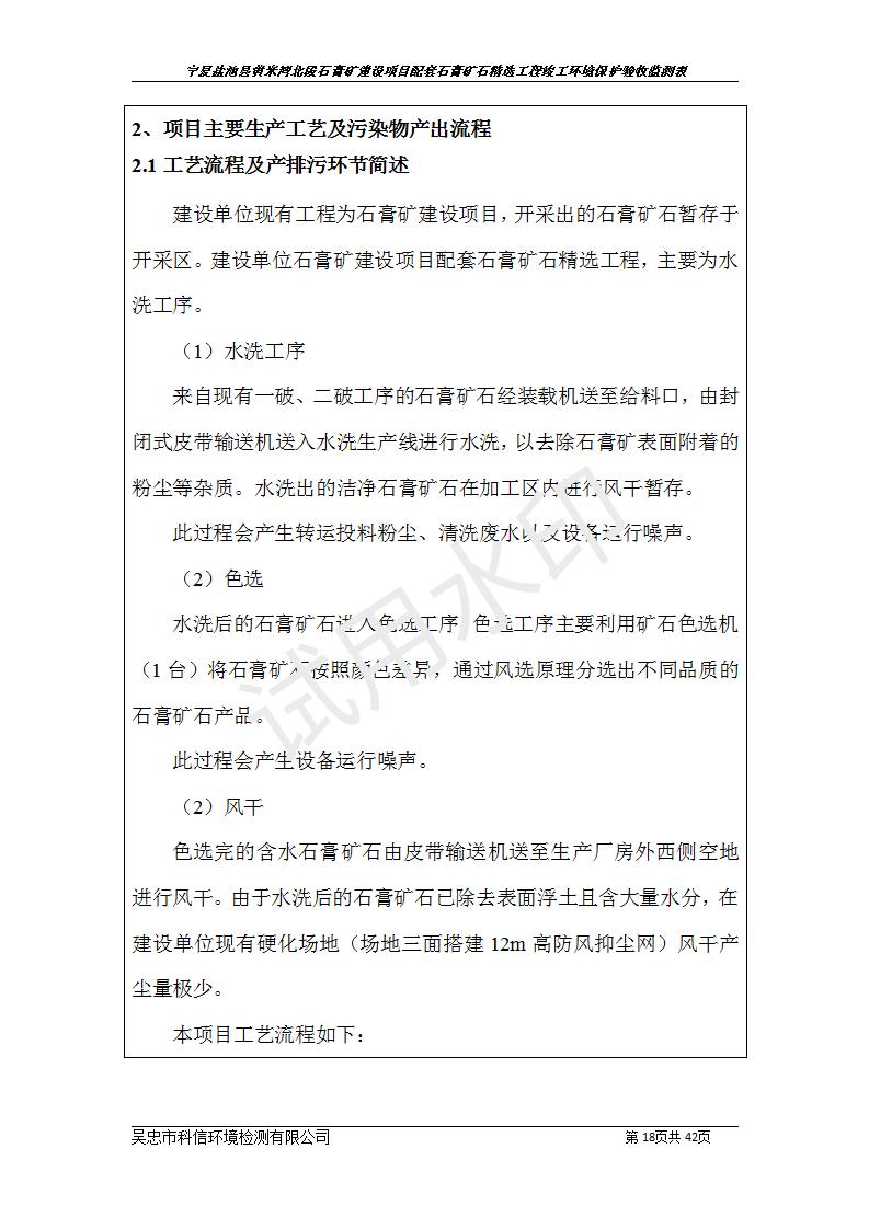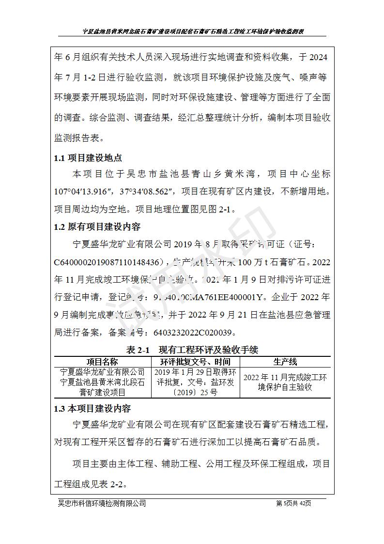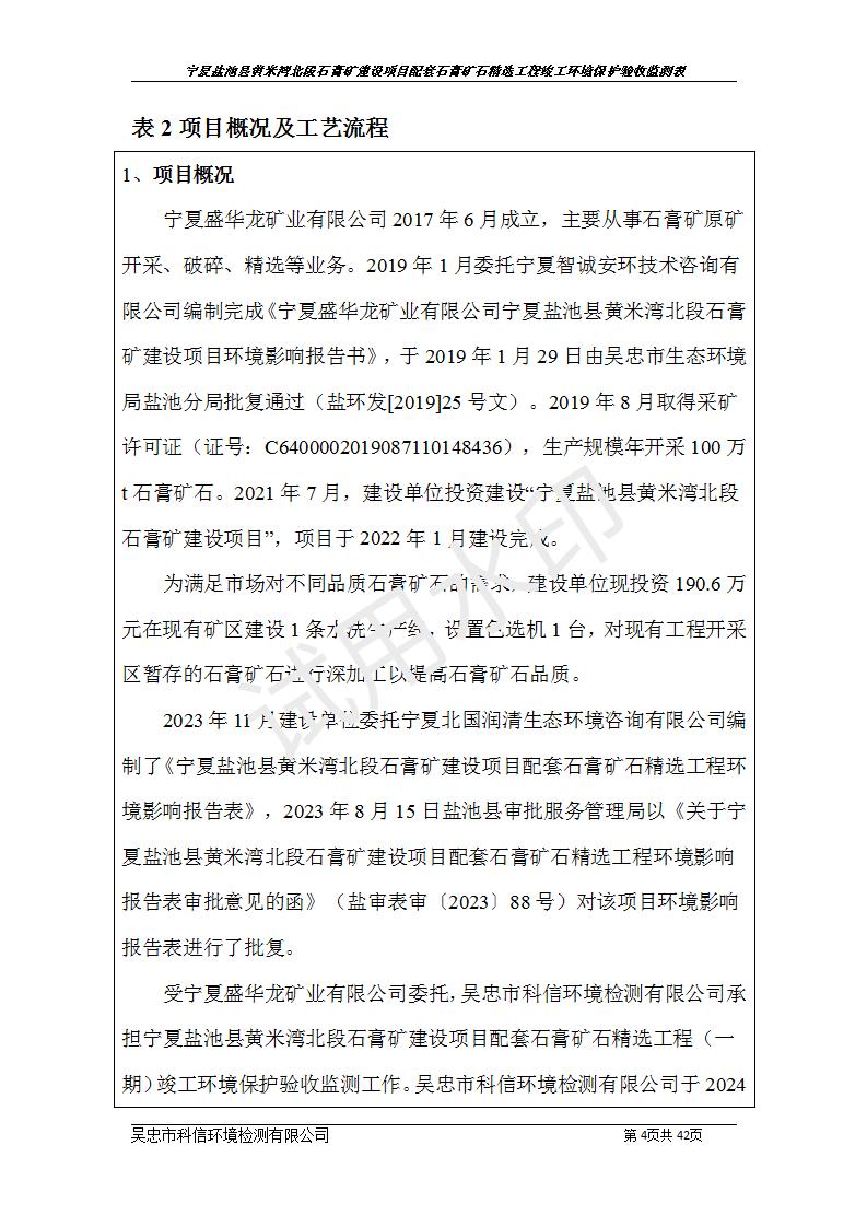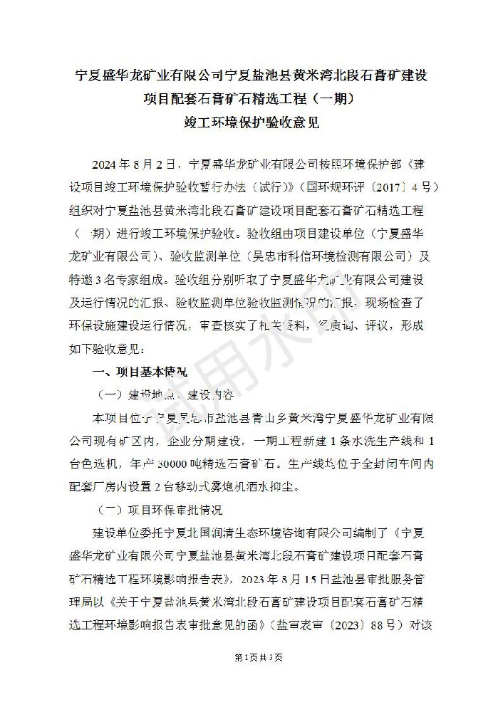 寧夏盛華龍礦業(yè)有限公司寧夏鹽池縣黃米灣北段石膏礦建設項目配套石膏精選工程報告表全文公示及專(zhuān)家意見(jiàn)