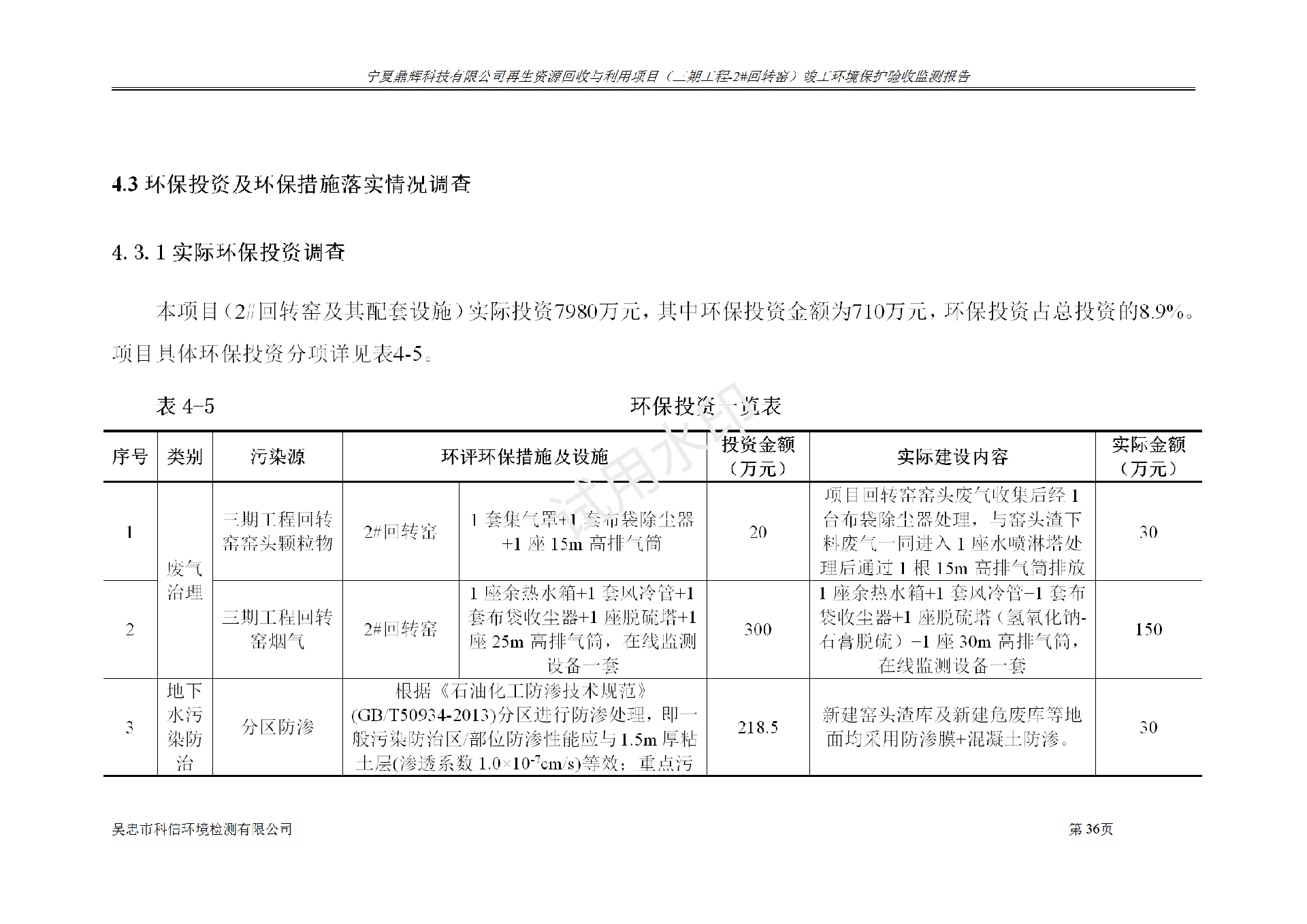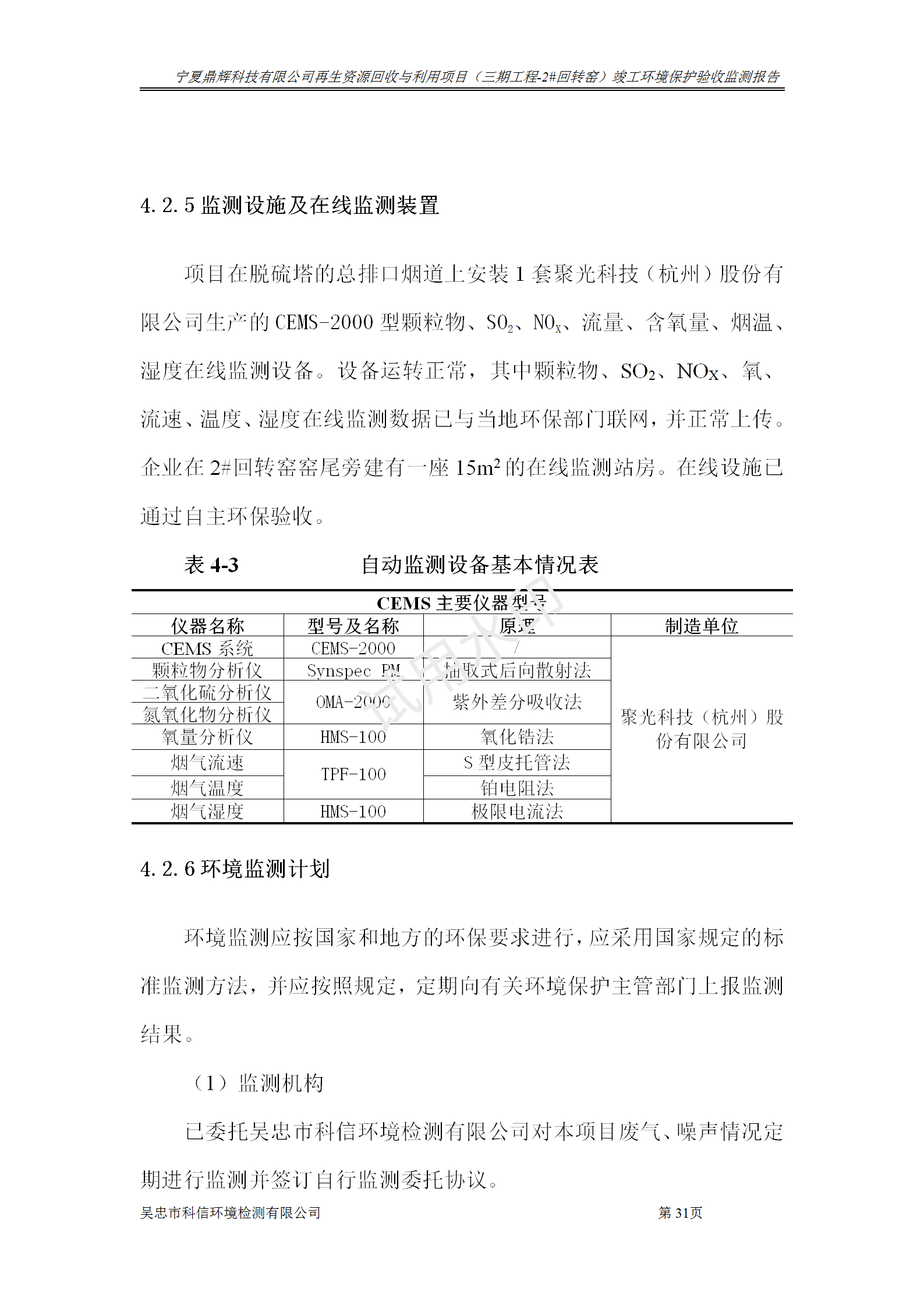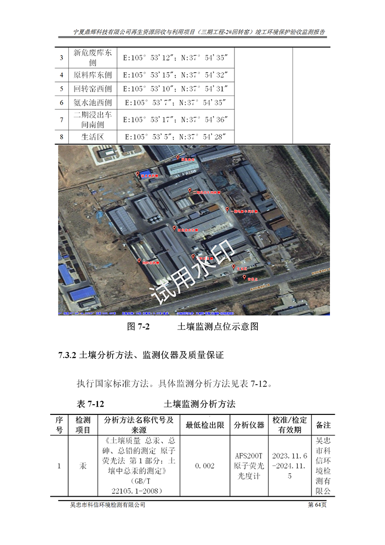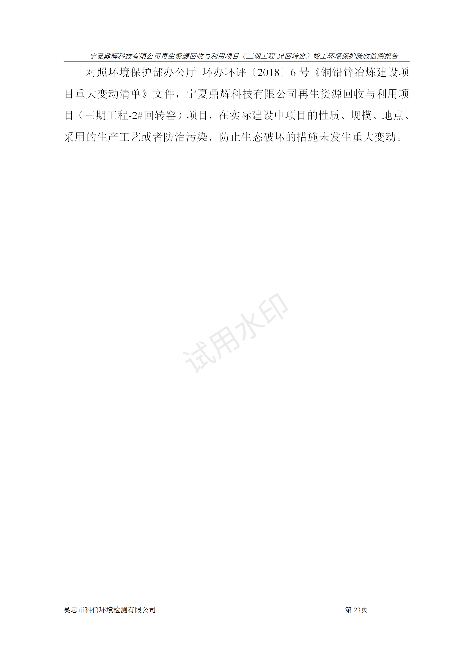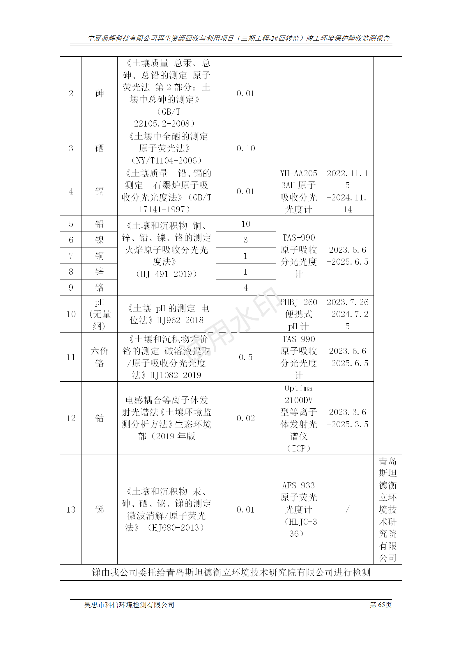 2024年7月5日,寧夏鼎輝科技有限公司(原名青銅峽市鼎輝工貿有限公司)按照環(huán)境保護部《建設項目竣工環(huán)境保護驗收暫行辦法(試行)》(國環(huán)規環(huán)評〔2017〕4號)組織對青銅峽市鼎輝工貿有限公司再生資源回收與利用項目(三期工程-2#回轉窯)進(jìn)行竣工環(huán)境保護驗收。驗收組由項目建設單位(寧夏鼎輝科技有限公司)、驗收監測單位(吳忠市科信環(huán)境檢測有限公司)及特邀3名專(zhuān)家組成。驗收組聽(tīng)取了青銅峽市鼎輝工貿有限公司再生資源回收與利用項目(三期工程-2#回轉窯)建設及環(huán)保設施建設運行情況的匯報,聽(tīng)取了驗收監測單位驗收監測情況的匯報,現場(chǎng)檢查了環(huán)保設施建設運行情況,審查核實(shí)了相關(guān)資料,經(jīng)討論、評議,形成如下驗收意見(jiàn):