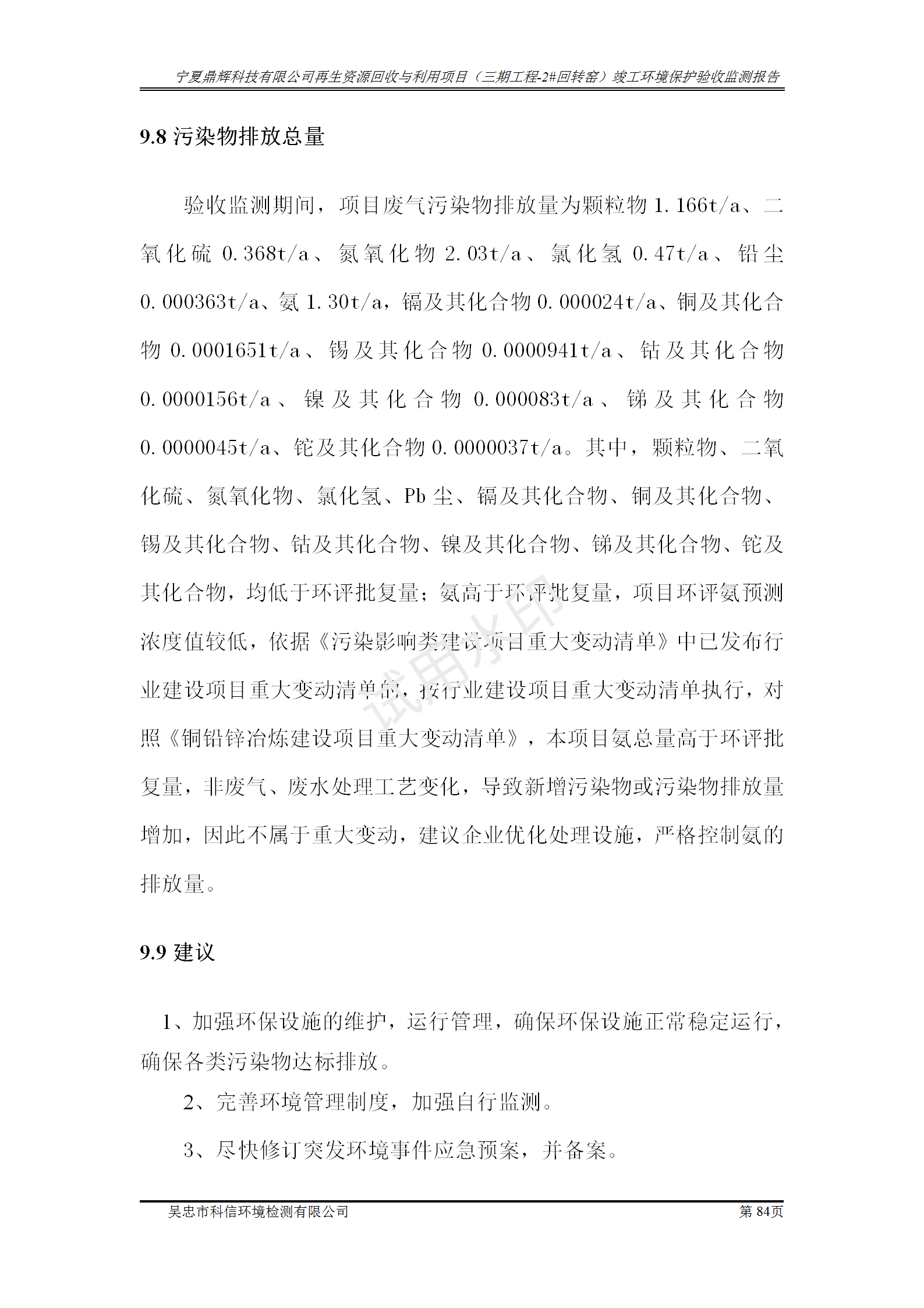 寧夏鼎輝科技有限公司再生資源回收與利用項目(三期工程-2#回轉窯)竣工環(huán)境保護驗收報告及專(zhuān)家意見(jiàn)公示