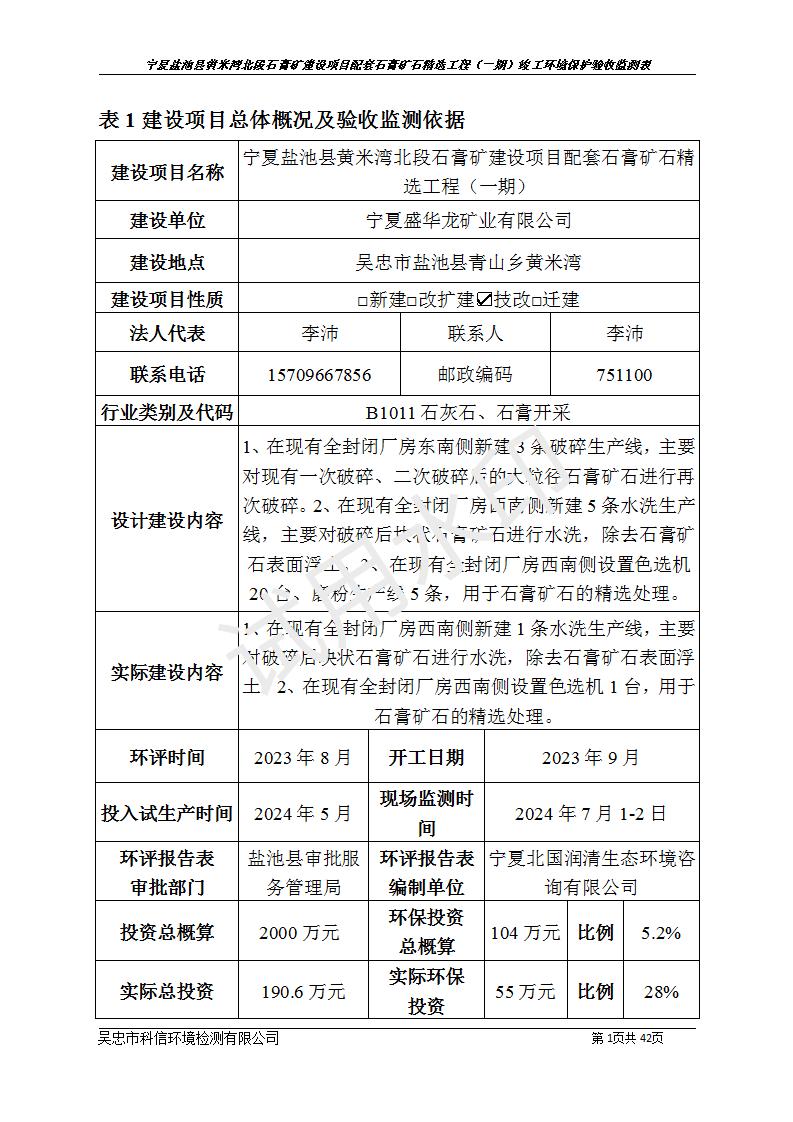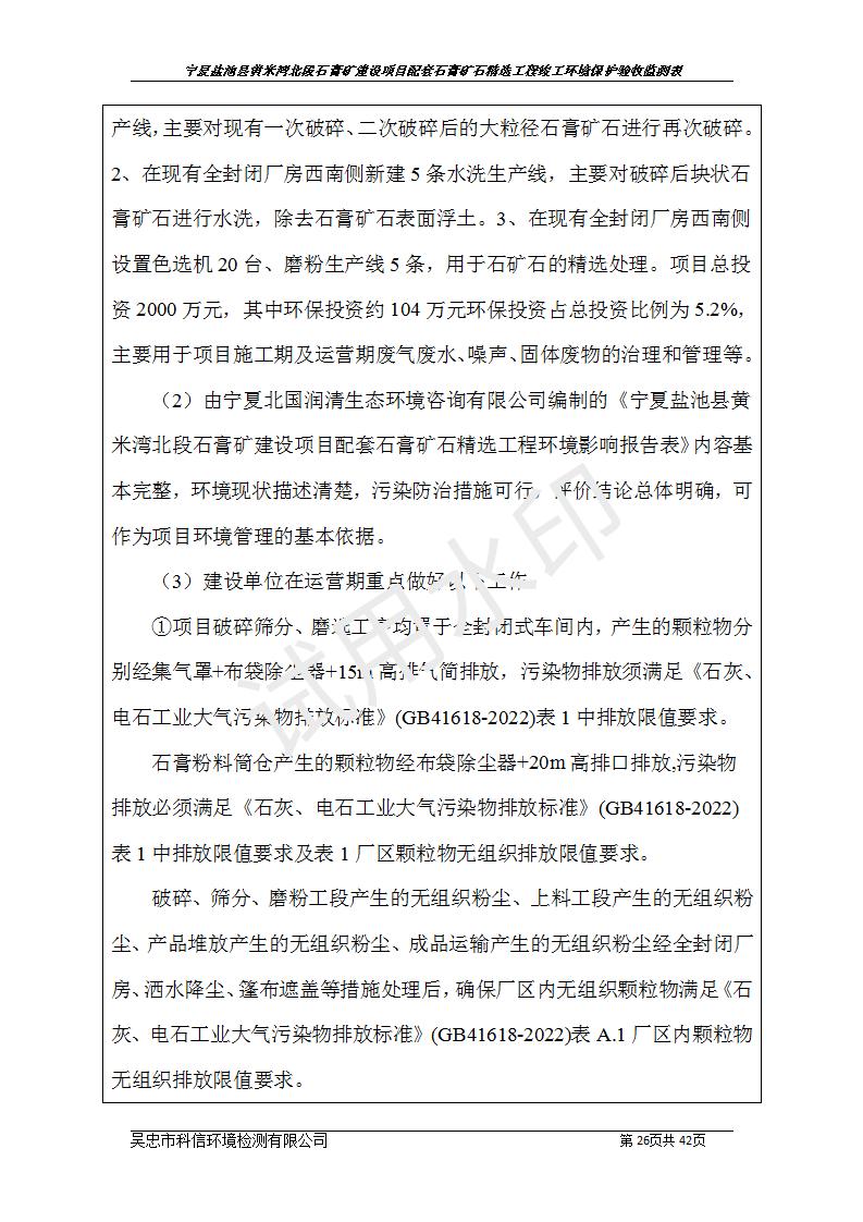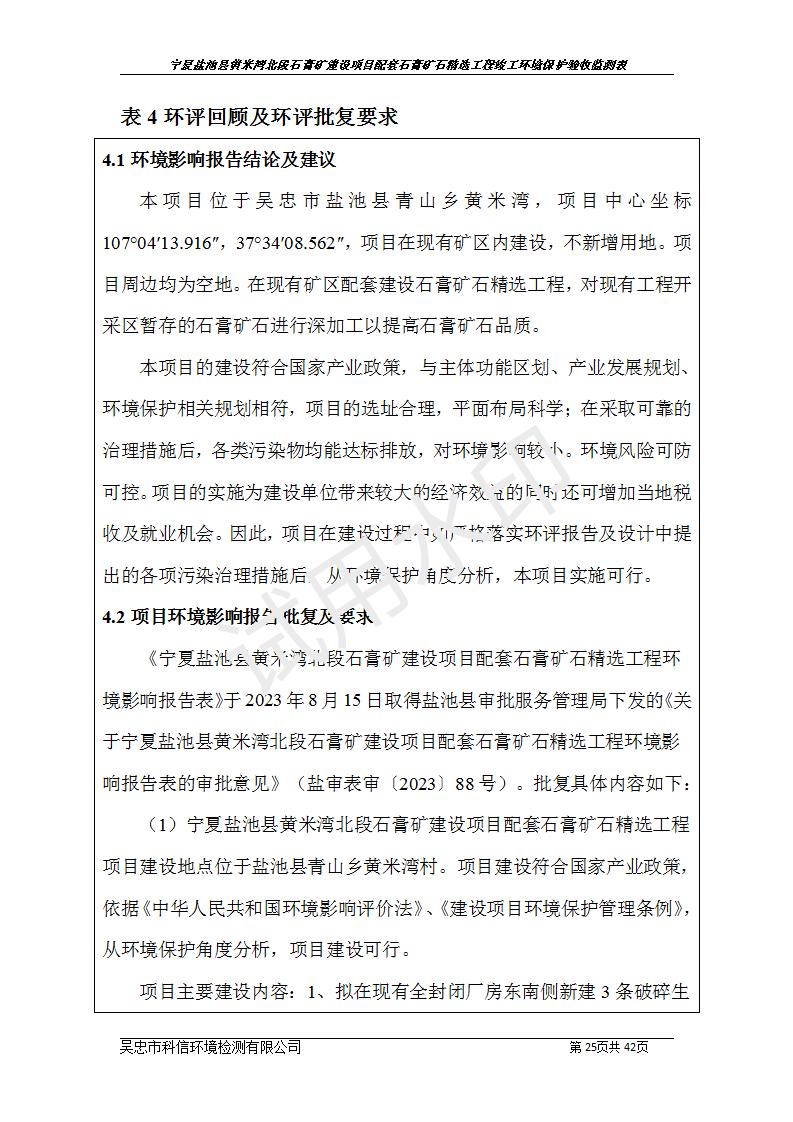 寧夏盛華龍礦業(yè)有限公司寧夏鹽池縣黃米灣北段石膏礦建設項目配套石膏精選工程報告表全文公示及專(zhuān)家意見(jiàn)
